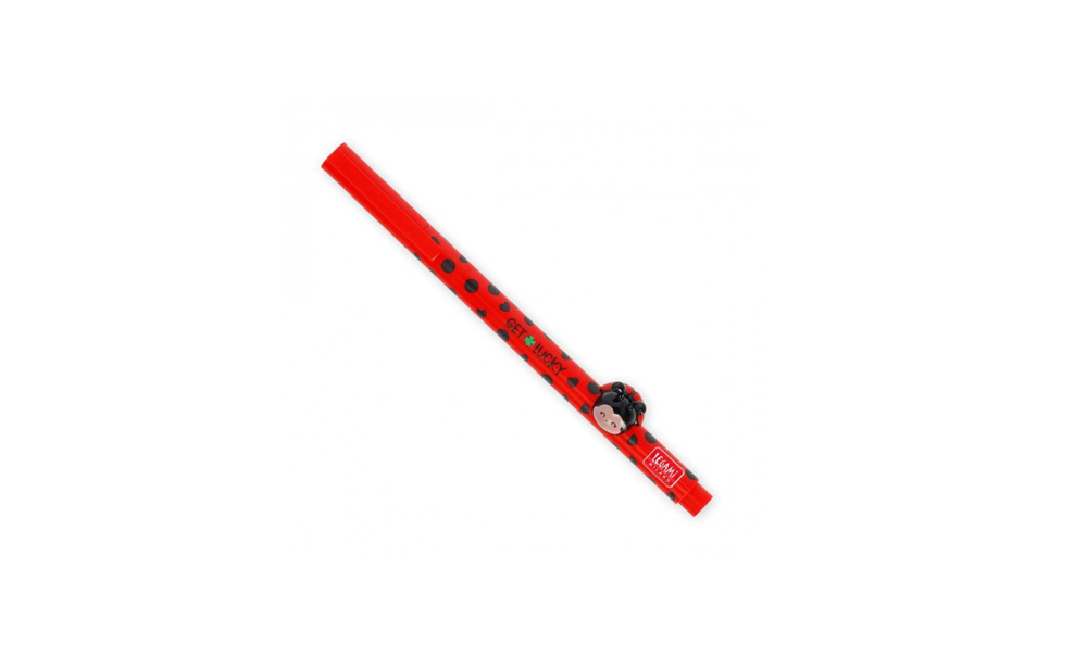 Ez a piros tintával töltött zseléstoll is a katica köpenyébe bújt.