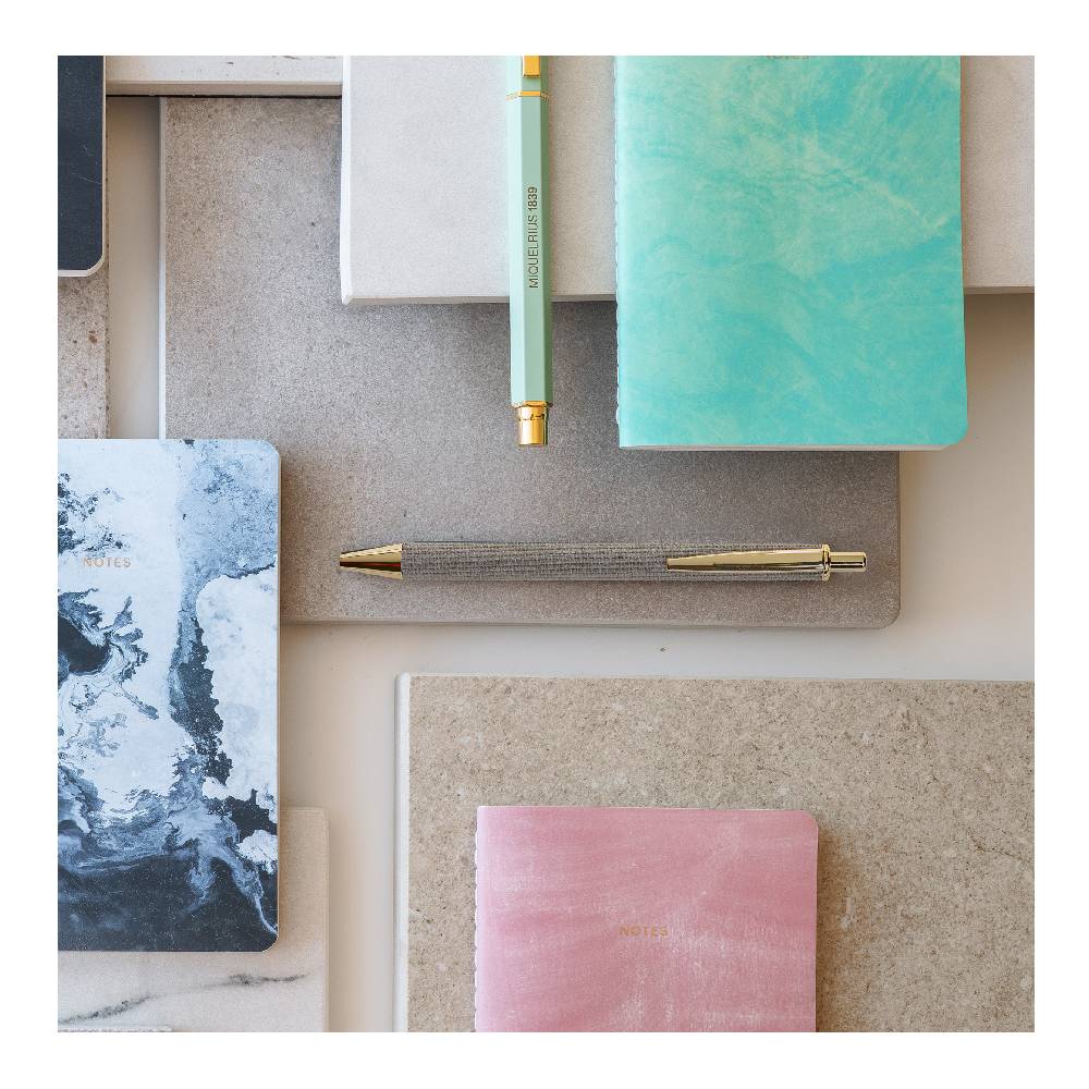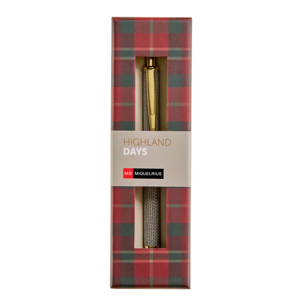 Miquelrius fém golyóstoll díszdobozban, barnás-zöld raffia borítású, Highland