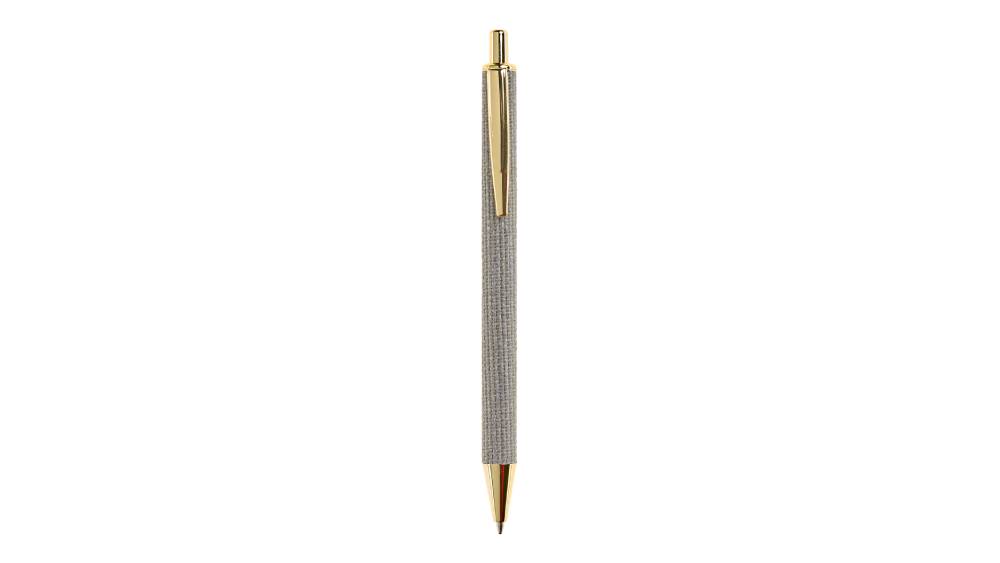 - Elegáns aranyszínű, világosbarna színű, raffia borítású golyóstoll