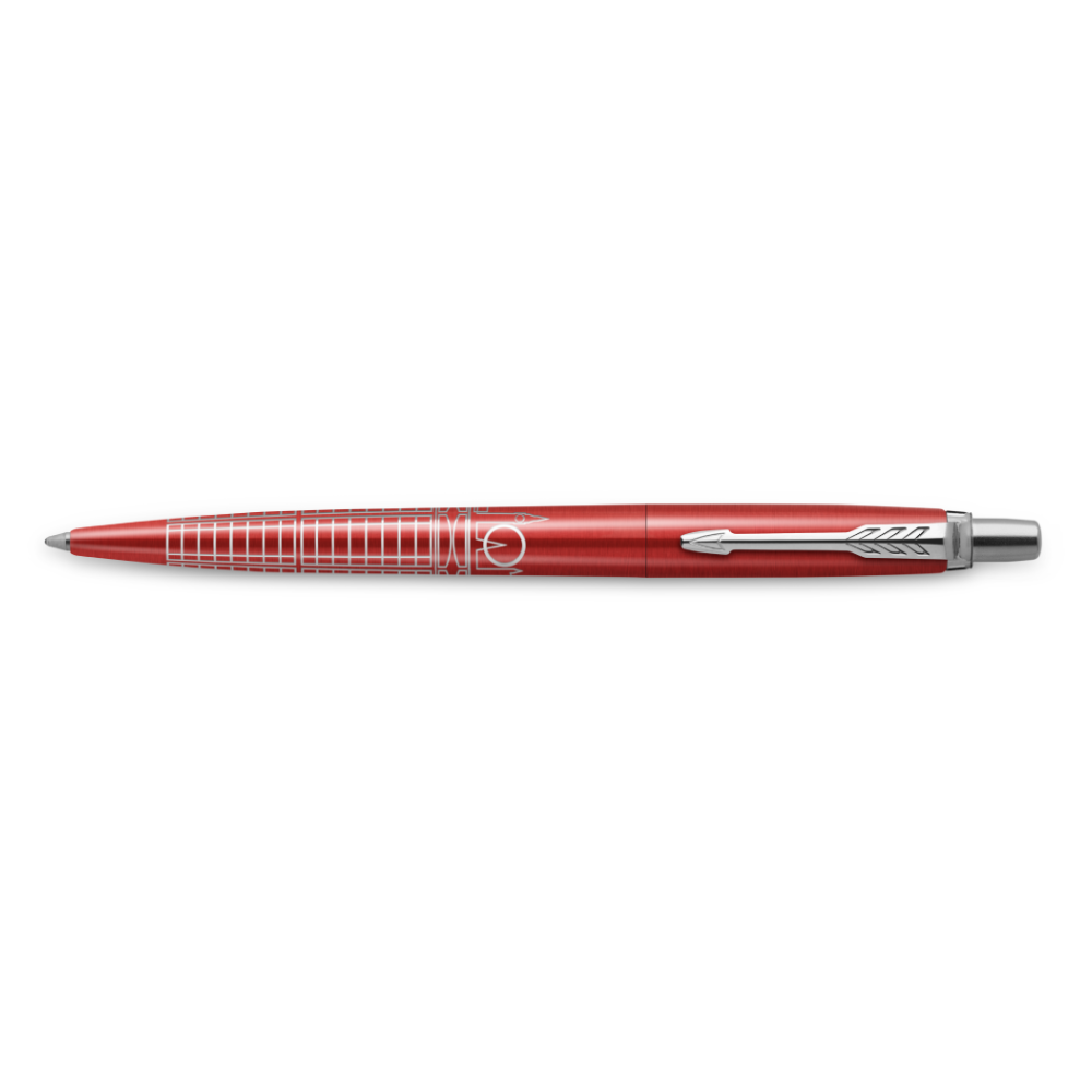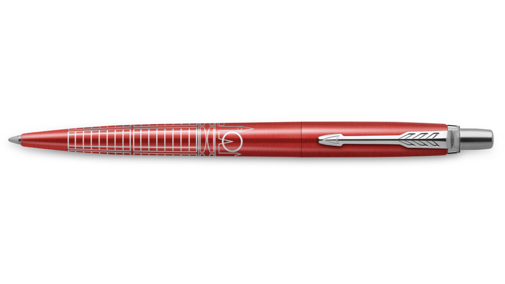A Parker mesteri kivitelezésének lenyűgöző példájaként az egyedi dizájn precízen lézergravírozva jelenik meg a toll testén. A vörös lakkozott felület, a sima írásélmény és a Jotterre jellemző, jól ismert „kattanás” teszi teljessé a tollat.