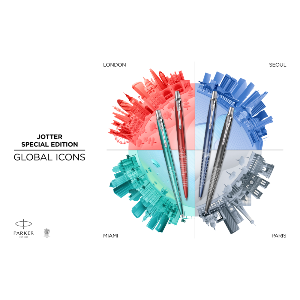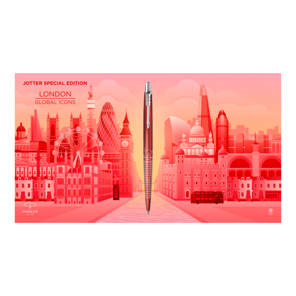A Jotter Special Edition „Global Icons” kollekció, folytatva világkörüli turnéját híres városokon keresztül, most négy új, izgalmas várost hódít meg. A fenséges szépség és az összetéveszthetetlen városkép inspirálta a Jotter Special Edition London modellt. A város ikonikus látnivalóinak történelmi sziluettjei, valamint a híres piros telefonfülkék jellegzetes négyzetrácsos ablakai tökéletesen visszaadják London stílusát és időtlen báját.