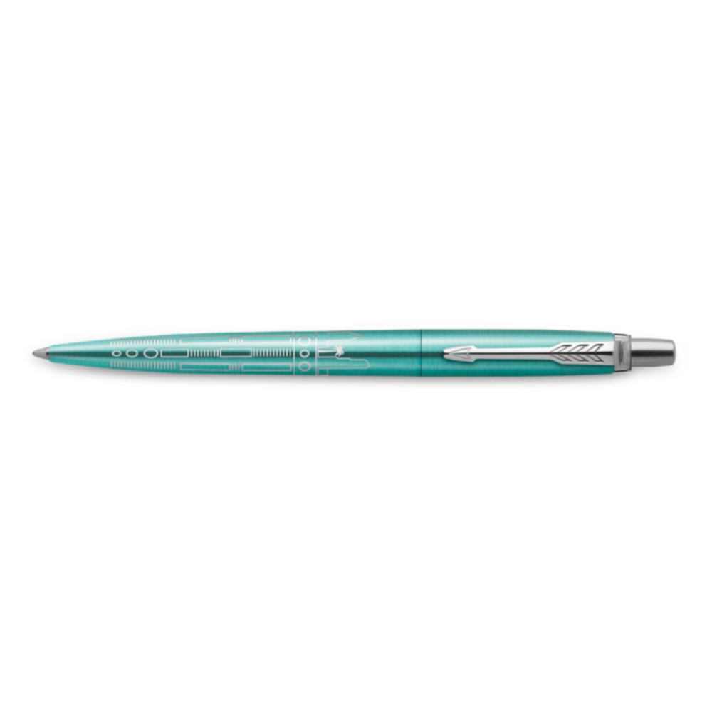 A Parker mesteri kivitelezésének lenyűgöző példájaként az egyedi dizájn precízen lézergravírozva jelenik meg a toll testén. A türkiz lakkozott felület, a sima írásélmény és a Jotterre jellemző ikonikus „kattanás” teszi teljessé ezt az elegáns tollat.