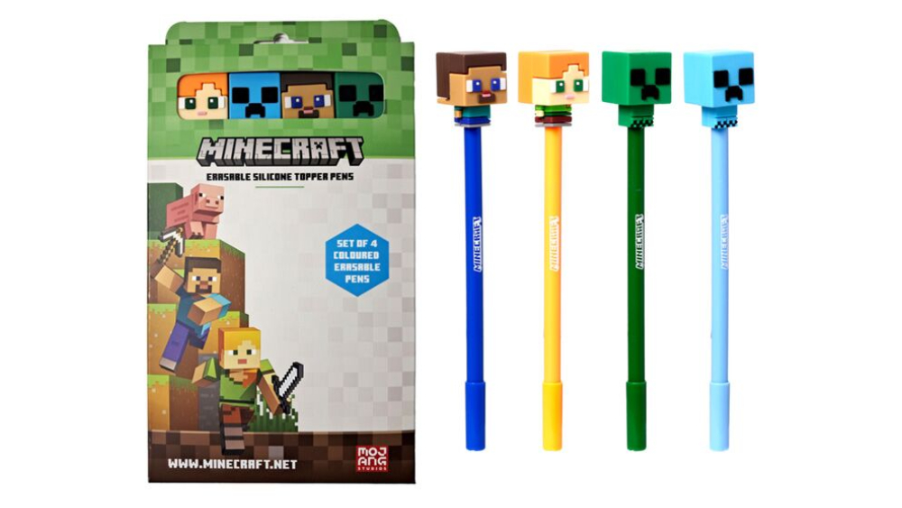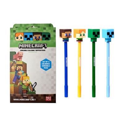 Puckator törölhető toll készlet, 4db-os, szilikon Chibi Minecraft dísszel
