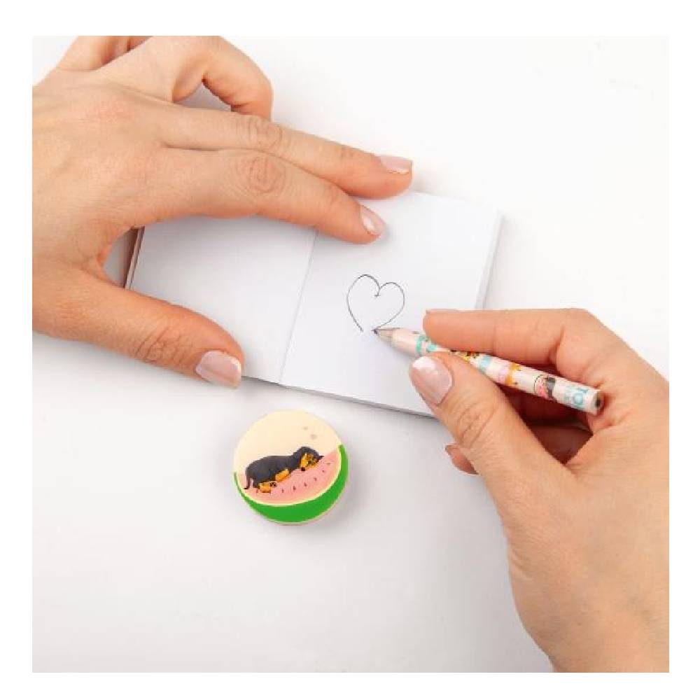 - 1 kis ceruzát, 1 kerek radírt és 1 aranyos jegyzetfüzetet.