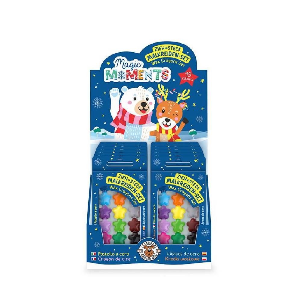 A sokoldalú, virág alakú, egymásba illeszthető, zsírkréták 15 különböző színben