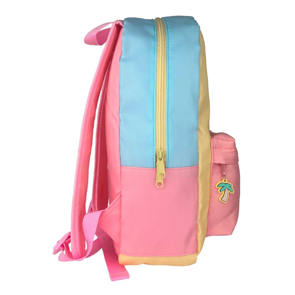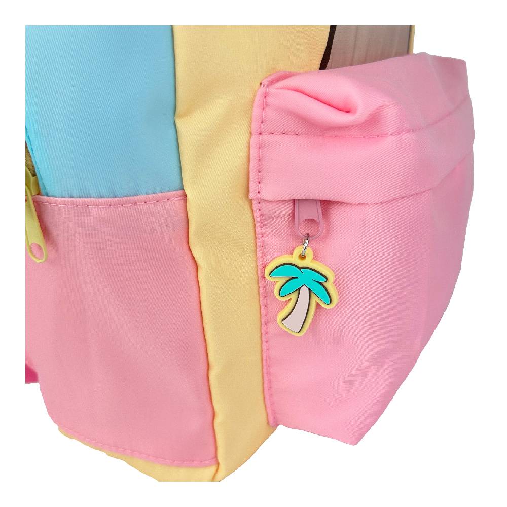 - Tedd biztonságossá az összes könyvedet, írószeredet és iskolai kellékedet a napi teendőidhez a cipzáras fő rekeszben, amely egy pálmafa alakú cipzárhúzóval záródik