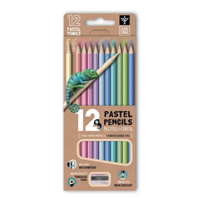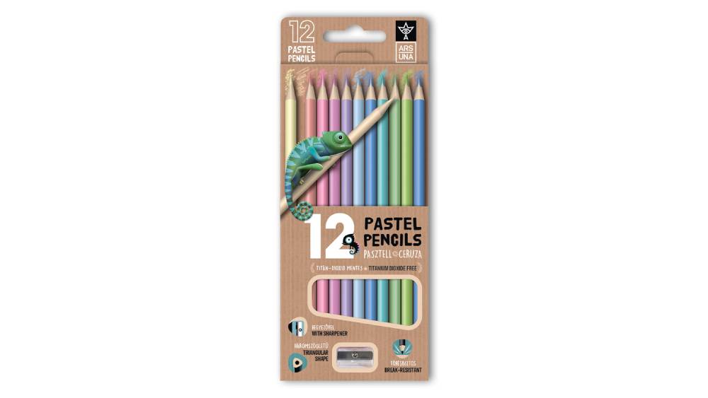 Ars Una 12 színű, háromszögletű színes ceruzakészlet hegyezővel, pasztell