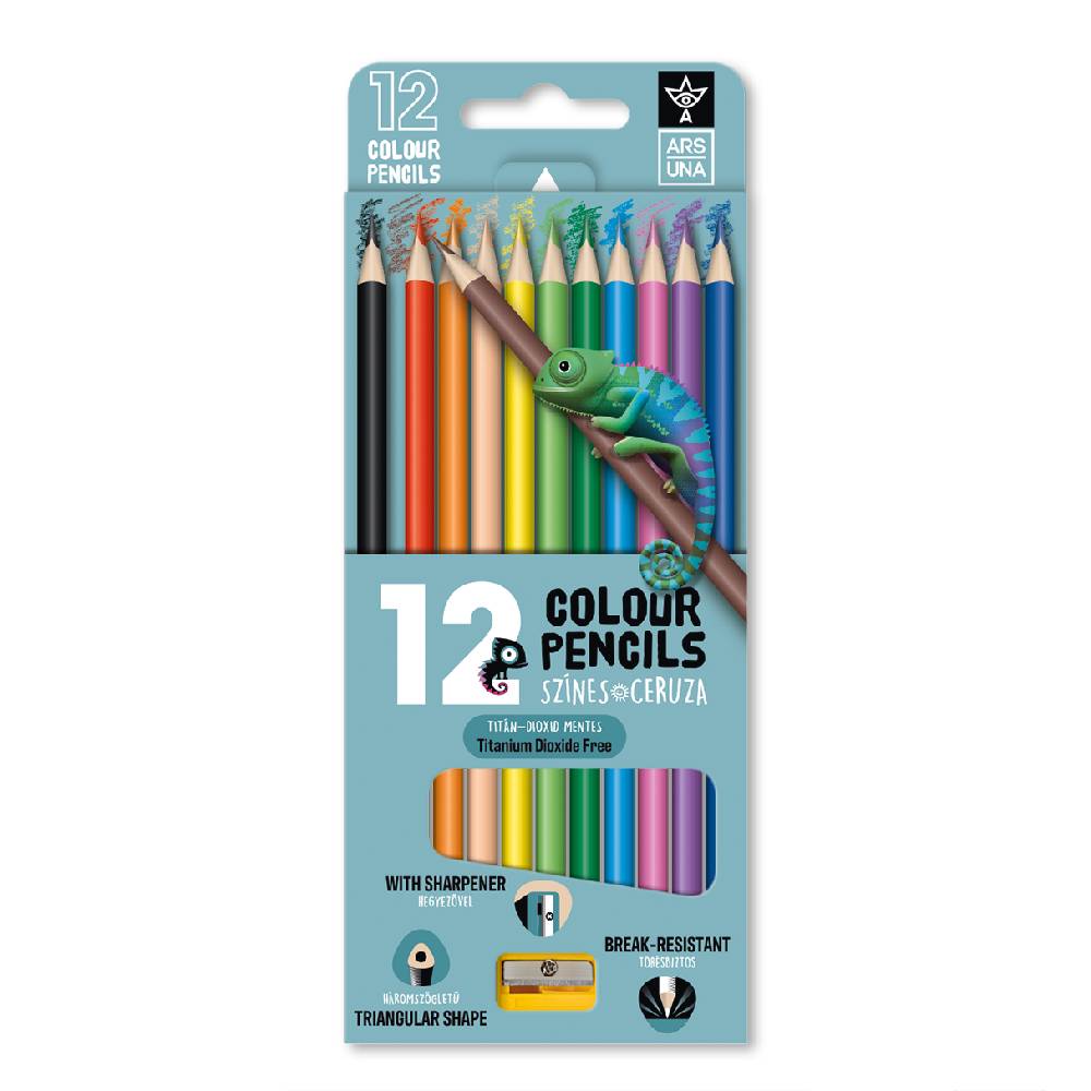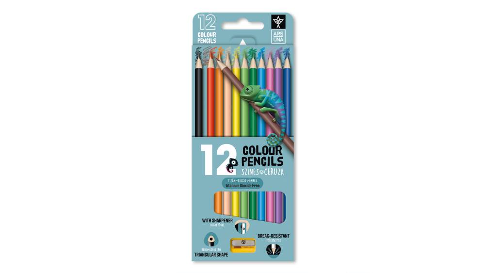 Ars Una 12 színű, háromszögletű színes ceruzakészlet hegyezővel