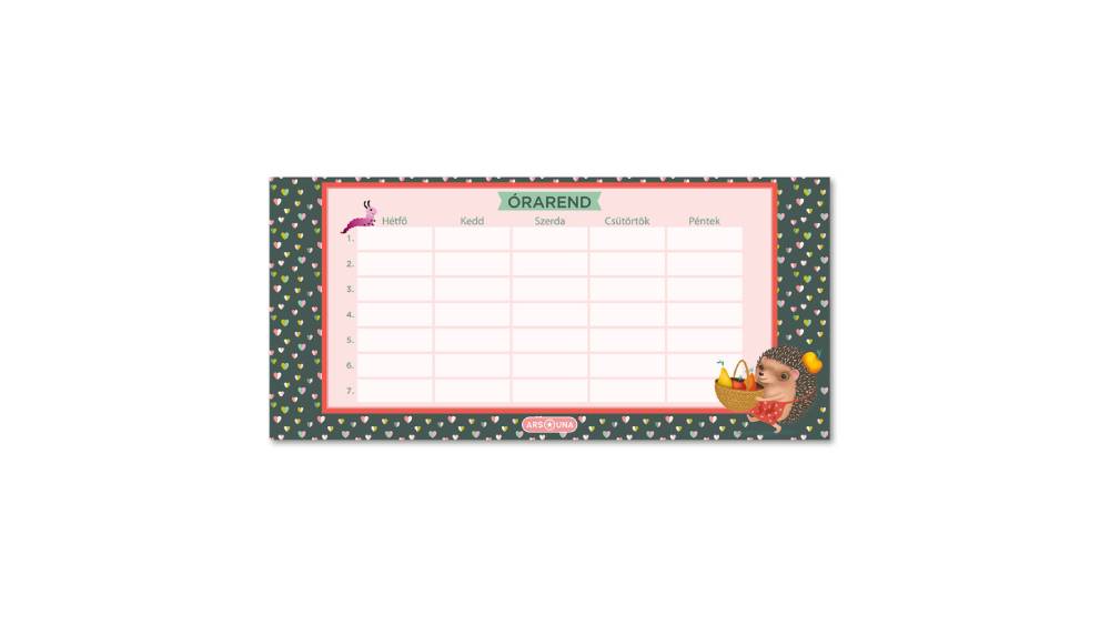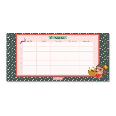 - Kétoldalas, magyar nyelvű órarend bájos, sünis grafikával
