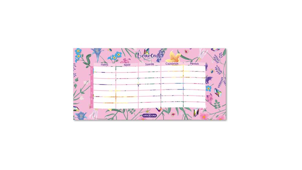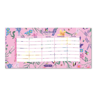 - Kétoldalas, magyar nyelvű órarend szép, virágos grafikával