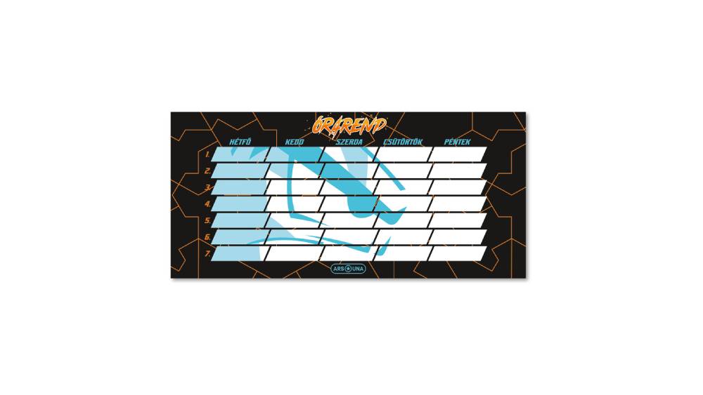 - Kétoldalas, magyar nyelvű órarend gamer grafikával