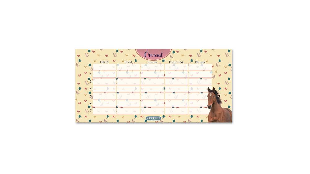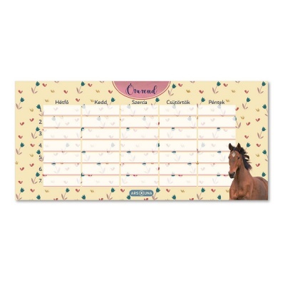 - Kétoldalas, magyar nyelvű órarend szép, lovas grafikával