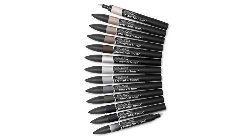Art-Export Ecsetfilc készlet, W&N, Promarker Brush, 12+1 db, Neutral Tones