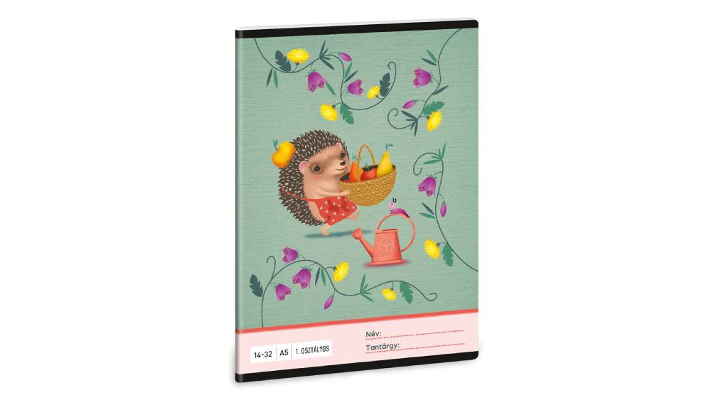 Vonalas füzet elsősöknek, borítóján sünis grafikával
