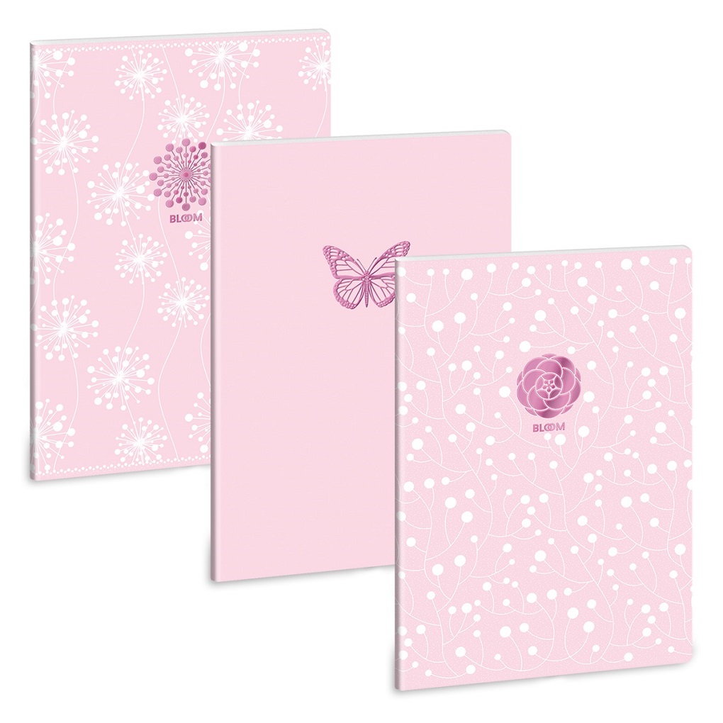 - Rózsaszín füzetek fémesen csillogó, dombornyomott logóval