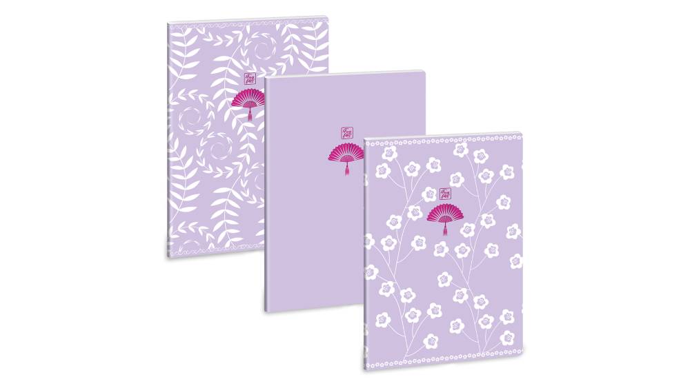 - Lila színű borítóval, fémesen csillogó, dombornyomott logóval