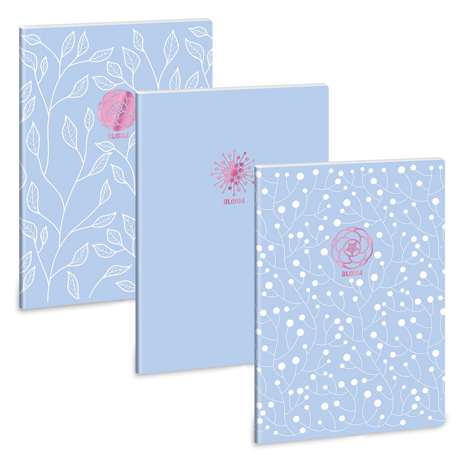 - Viláoskék füzetek fémesen csillogó, dombornyomott logóval