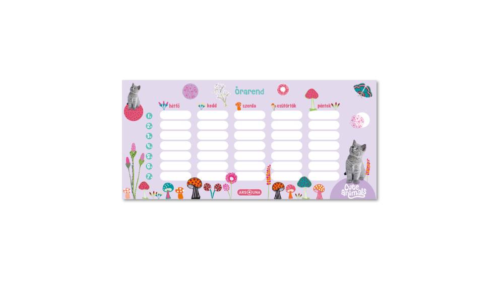 - Kétoldalas, magyar nyelvű órarend aranyos, cicás mintával