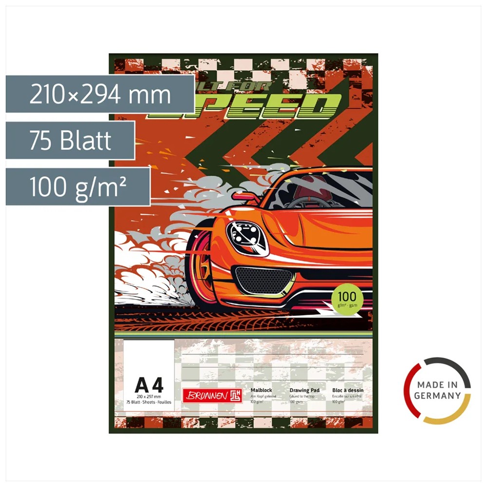 Baier Brunnen rajzlaptömb, A4, 75 lap, 100 g, autós, Fast Wheels