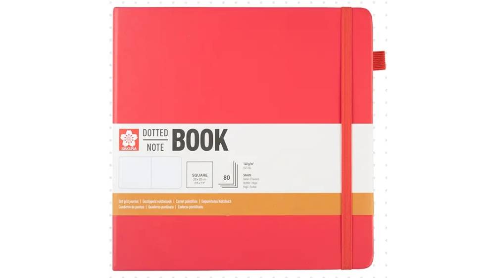 - Keményfedeles, gumiszalaggal zárható ponthálós jegyzetfüzet lekerekített sarkokkal, természetes fehér színű lapokkal