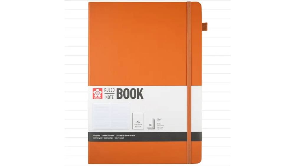 - Keményfedeles, gumiszalaggal zárható vonalas jegyzetfüzet lekerekített sarkokkal, természetes fehér színű lapokkal