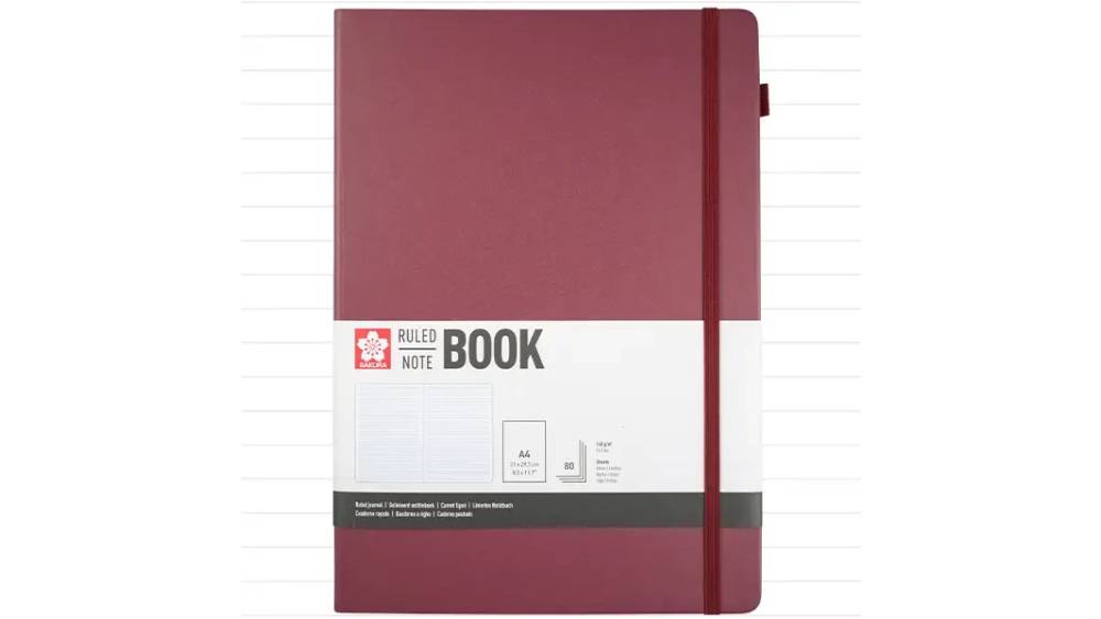 - Keményfedeles, gumiszalaggal zárható vonalas jegyzetfüzet lekerekített sarkokkal, természetes fehér színű lapokkal