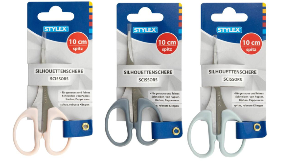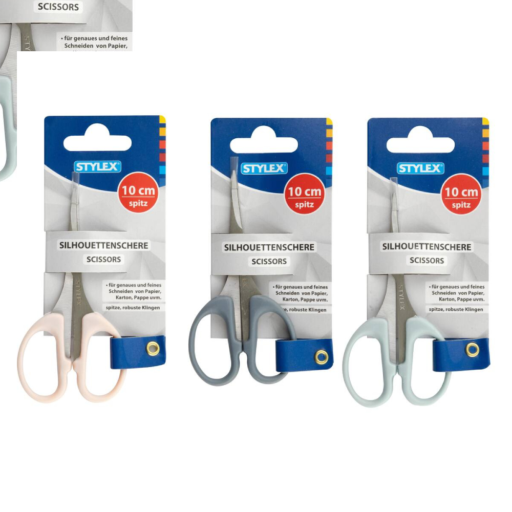 Sziluettolló, hegyes végű, rozsdamentes acél pengékkel, 10 cm hosszú, pontos vágásért, vegyes színekben.