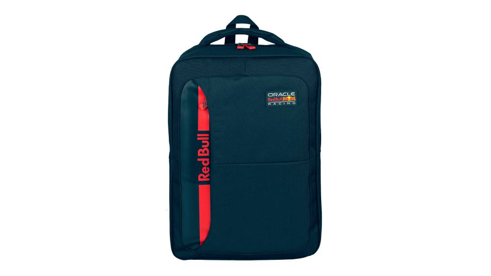 Elelülső részén további cipzáras rekesz és gumibetéttel ellátott Red Bull logó található.