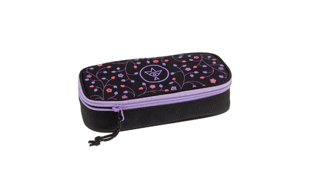 - Egyrekeszes tolltartó virág mintával, cipzáras belső zsebbel és írószertartóval