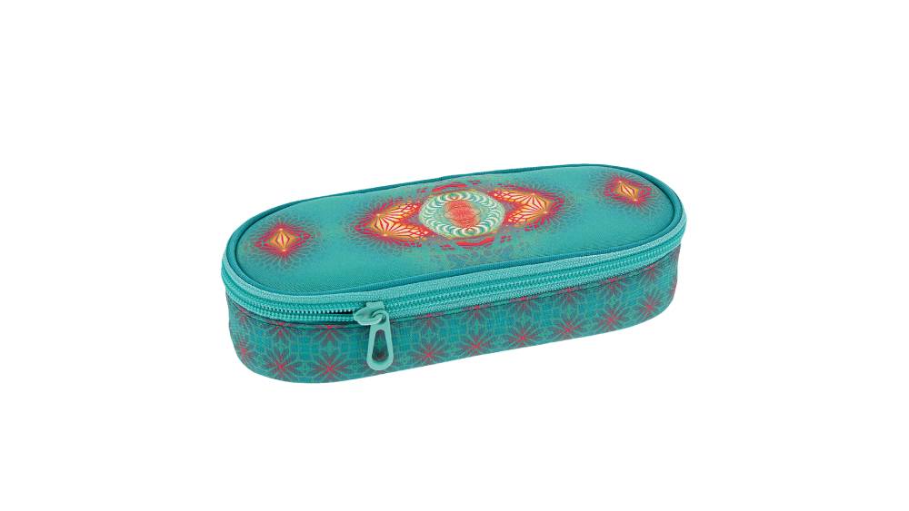 Egy rekeszes tolltartó szép mandalamintával, cipzáras belső zsebbel és írószertartóval