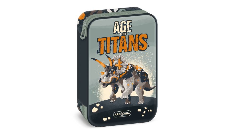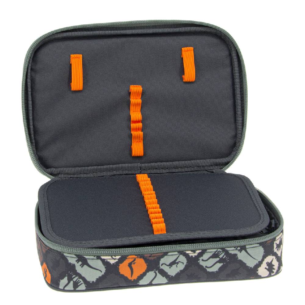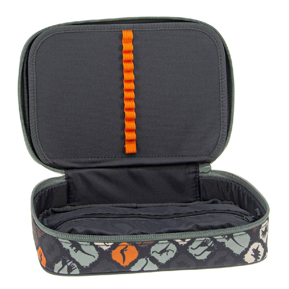 Nagyméretű, praktikus tolltartó vagány, dínós grafikával.