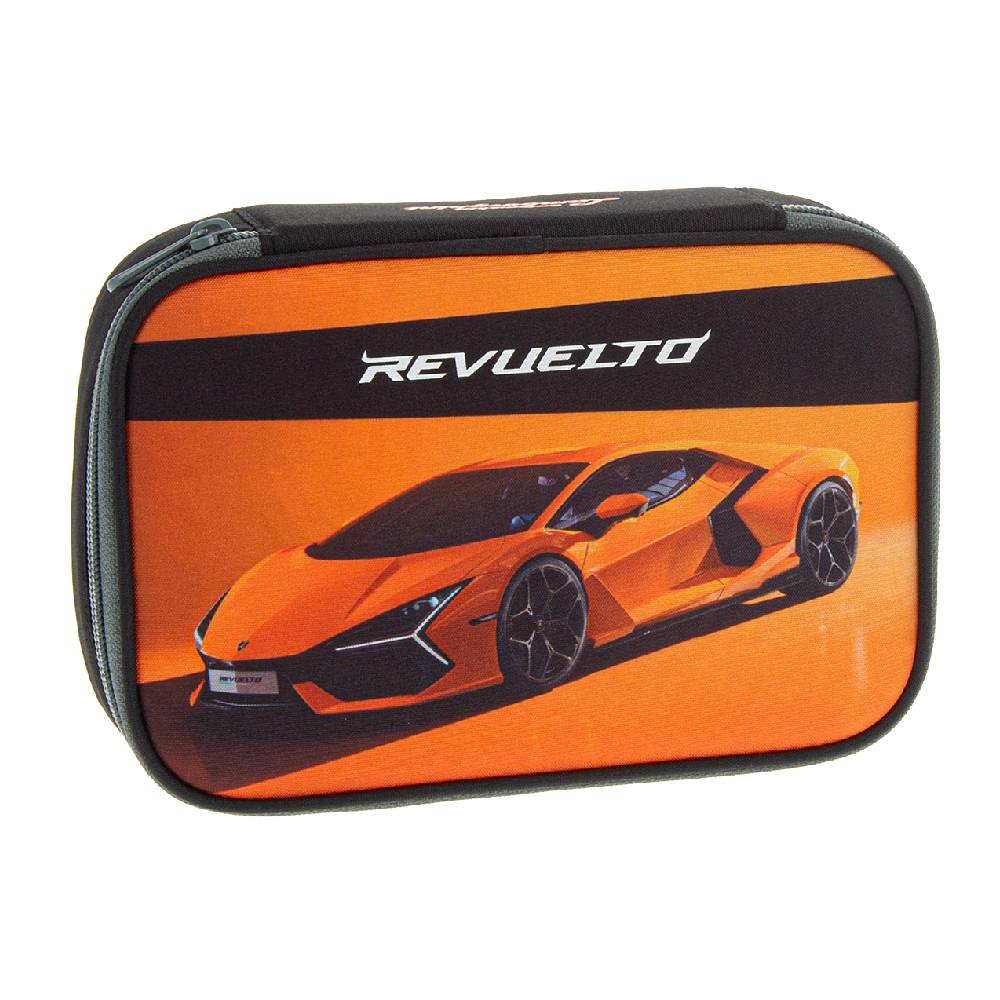 - Többszintes, töltetlen, cipzáras tolltartó Lamborghini sportautóval