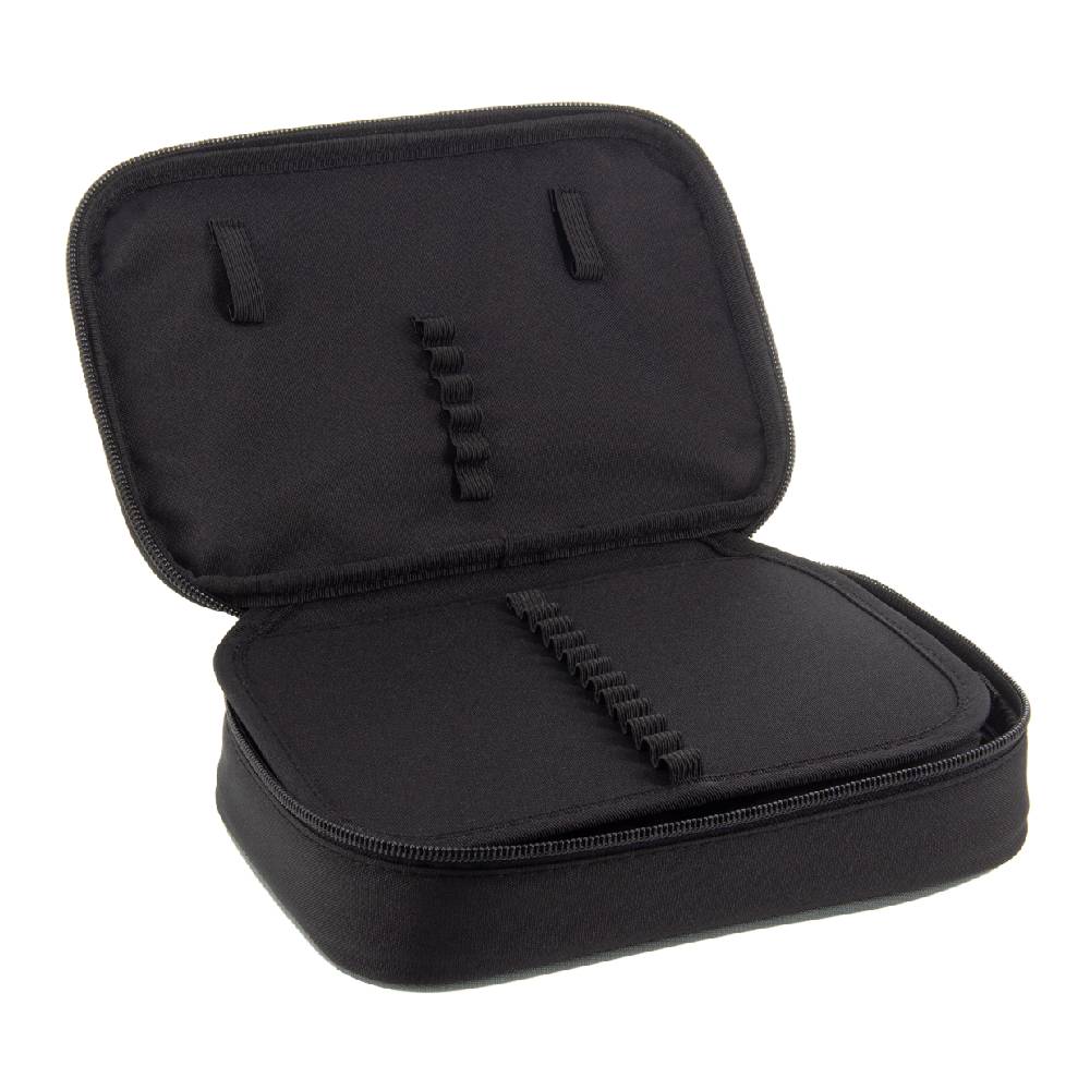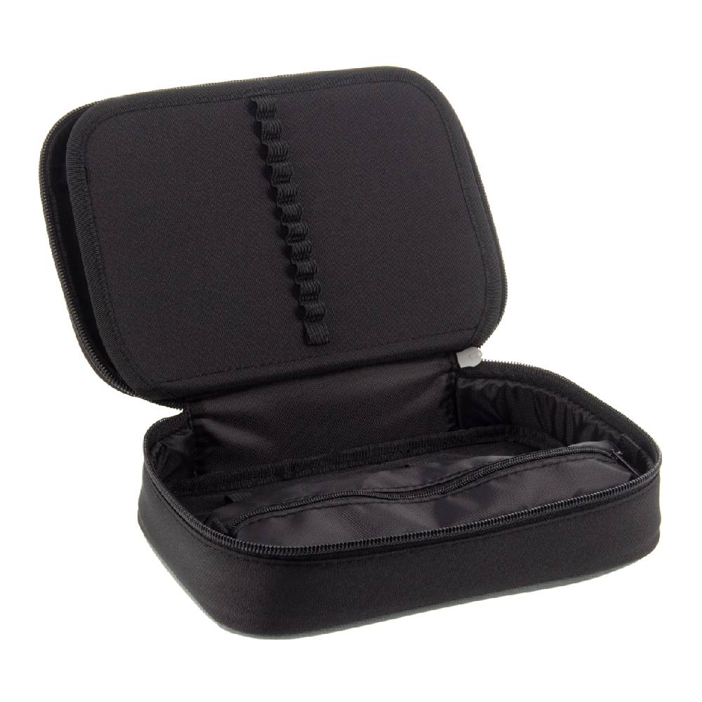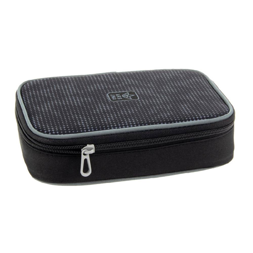 Nagyméretű, praktikus tolltartó visszafogott, fekete mintával