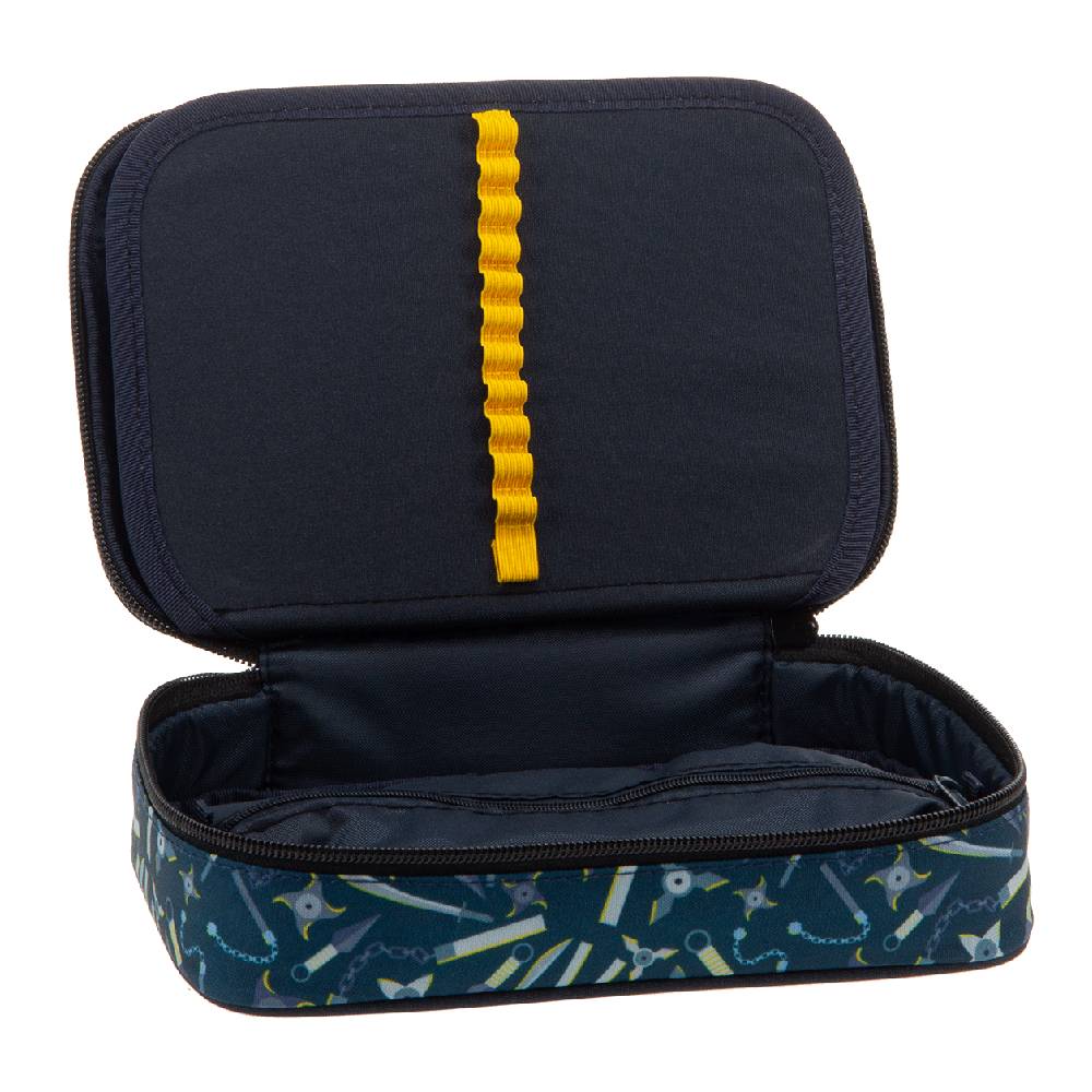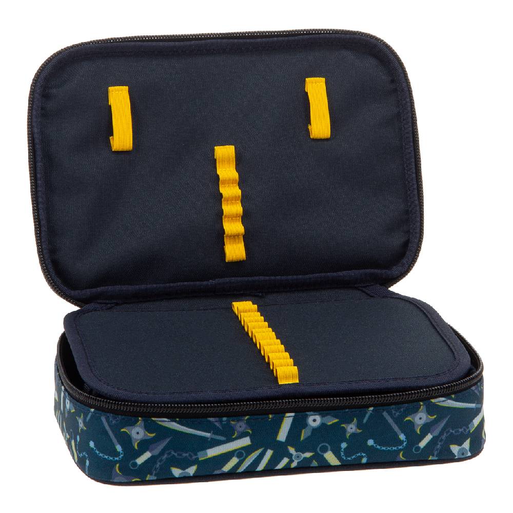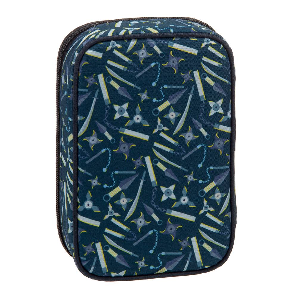 - Többszintes, töltetlen, cipzáras tolltartó ninja mintával.