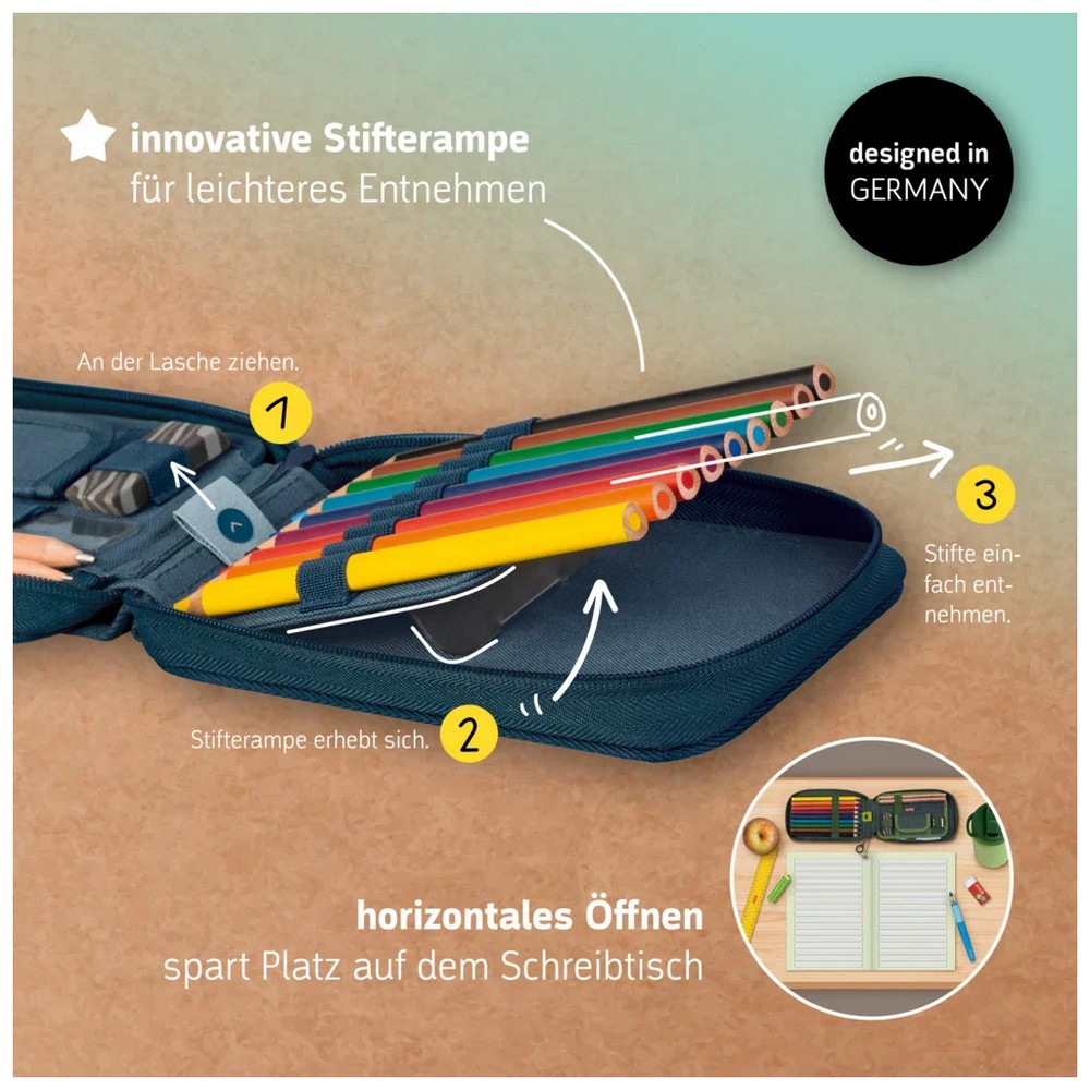 A benne lévő színes,- és grafitceruzák háromszöglegtűek, így fogásuk ideális, kényemes a gyermekek számára. A ceruzatartó rész feltámasztható, hogy a ceruzákat könnyebb legyen kivenni.