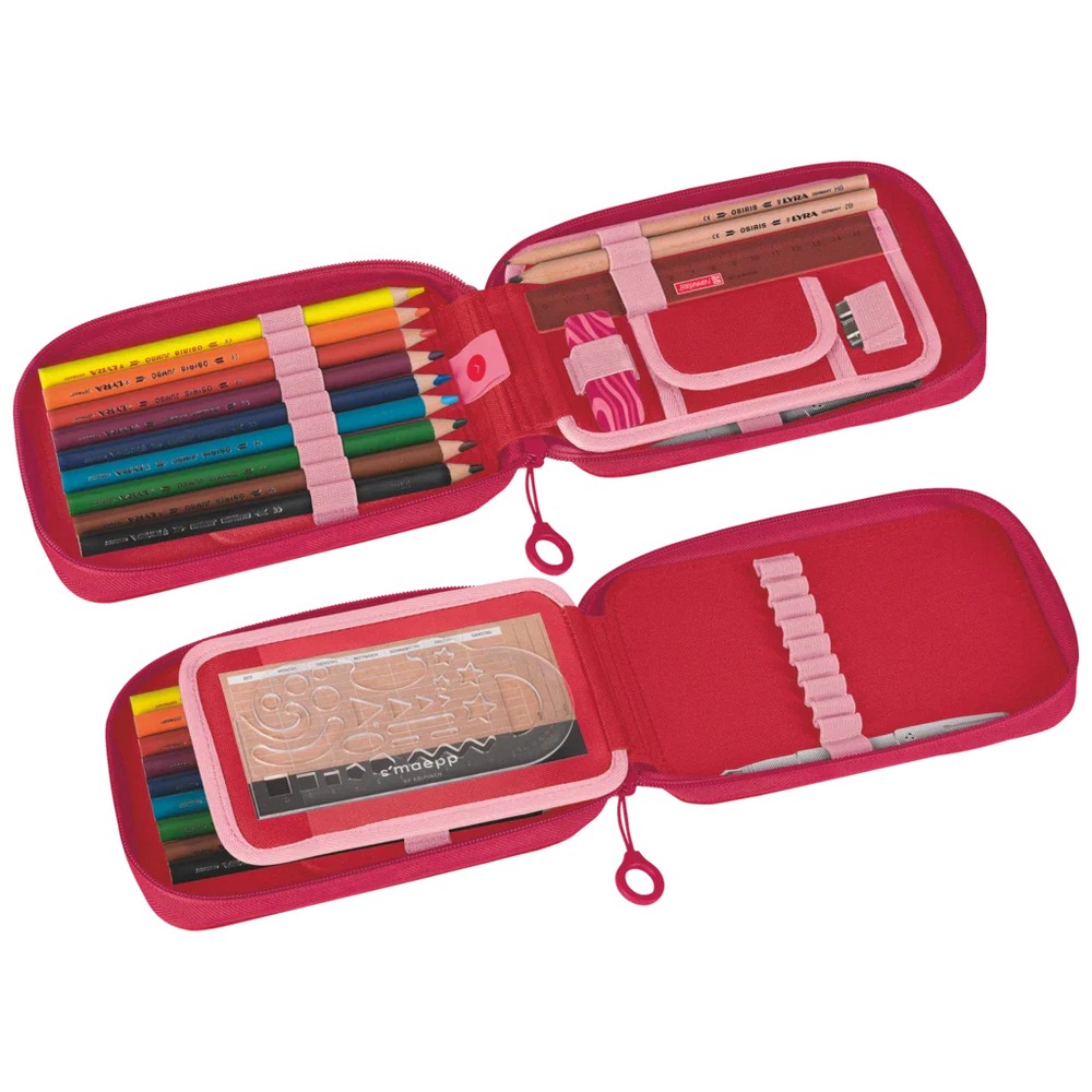 A tolltartóban jó minőségű radír, hegyező, órarend, egyenes és formavonalzó is található, illetve további írószerek (toll, filctoll, stb.) számára is van hely!