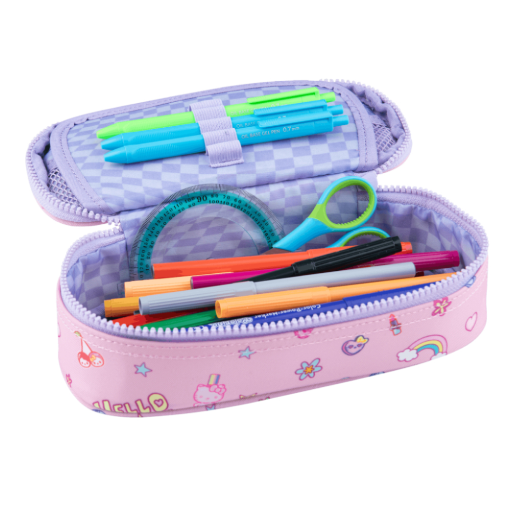 Vidám, Hello Kitty mintás bedobálós tolltartó, amely ideális választás az iskolai mindennapokra.