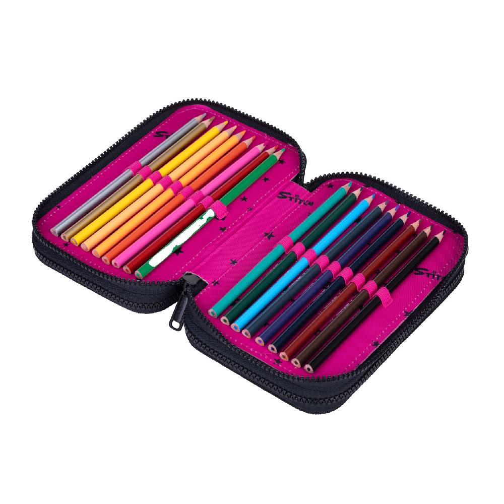 - Tartalma: 18 db filctoll, 18 db színesceruza, 2 db grafitceruza, 2 db golyóstoll, 1 db radír, olló, hegyező, 2 db vonalzó, 1 db szögmérő