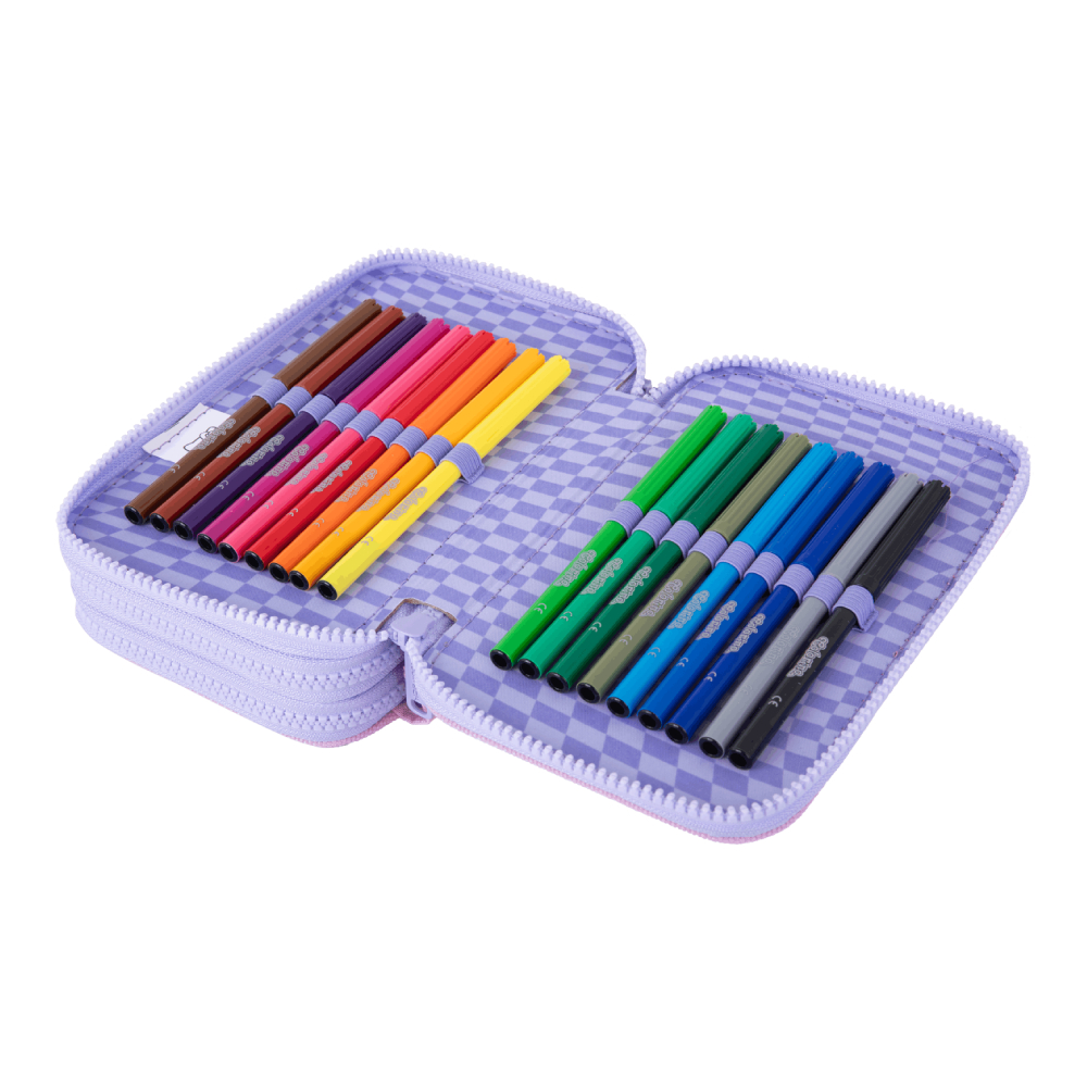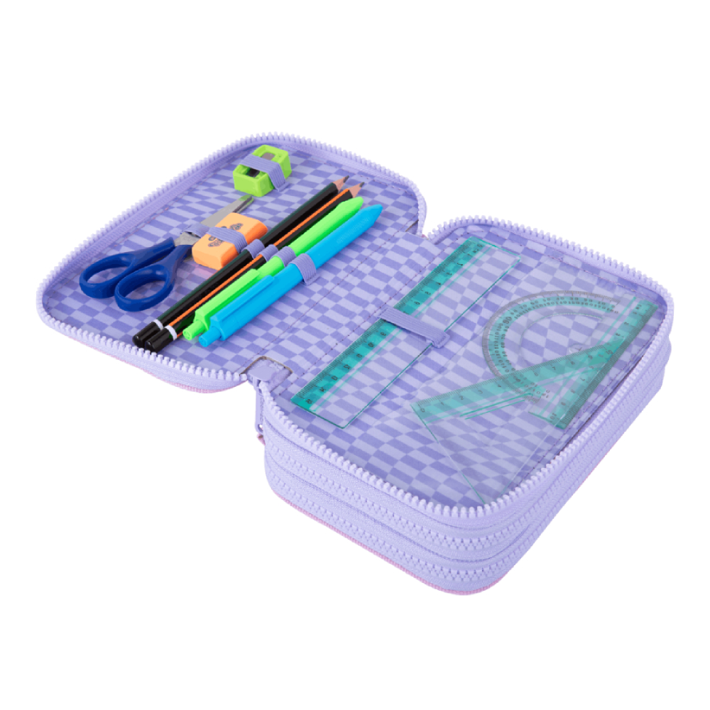 Praktikus belső kialakításának köszönhetően könnyedén rendszerezhetők benne az írószerek: egy klani ceruzartartó gumipántokkal, valamint egy cipzáras hálós zseb segíti a kisebb kiegészítők tárolását.