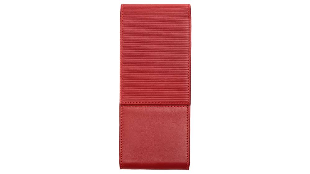 - Bőr tolltartó piros nappa bőrből, jellegzetes dombornyomással 3 db íróeszközhöz