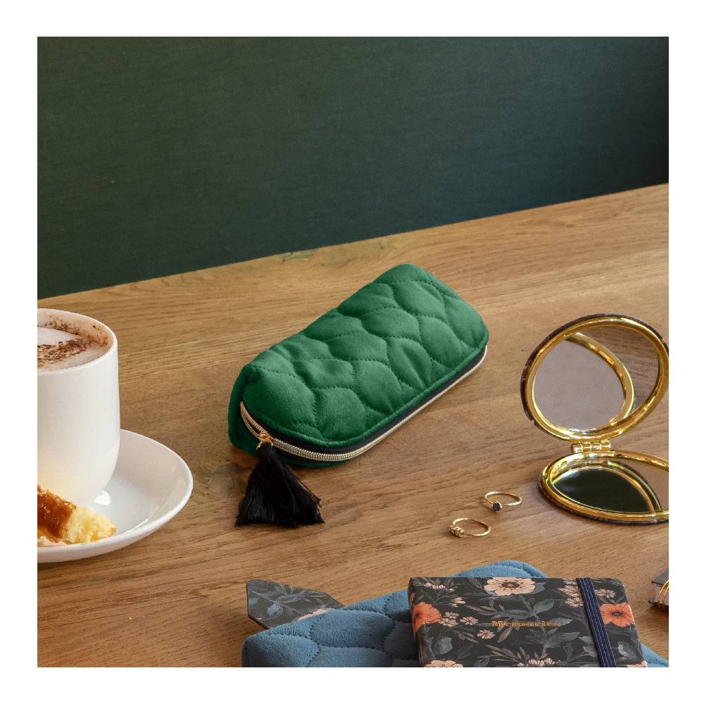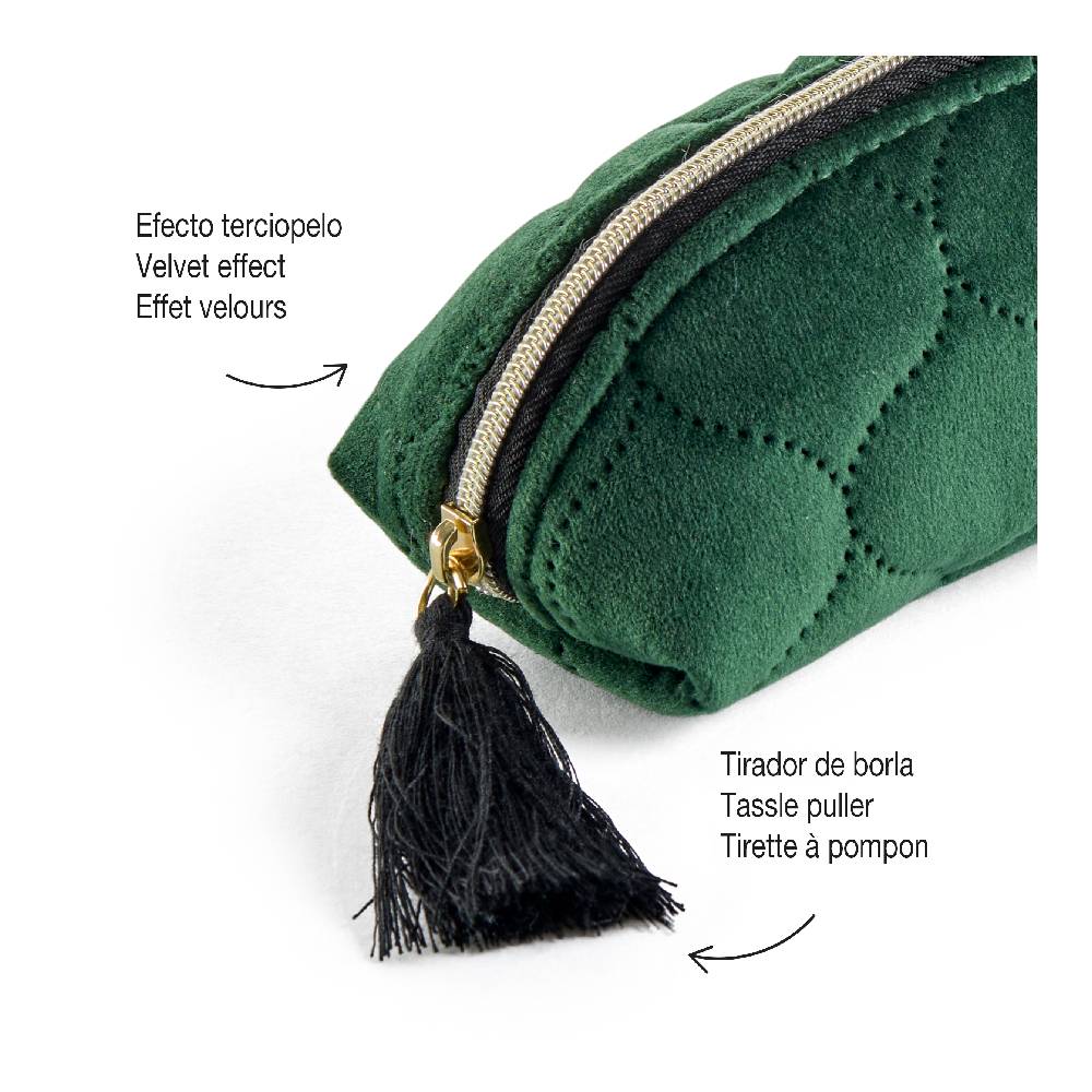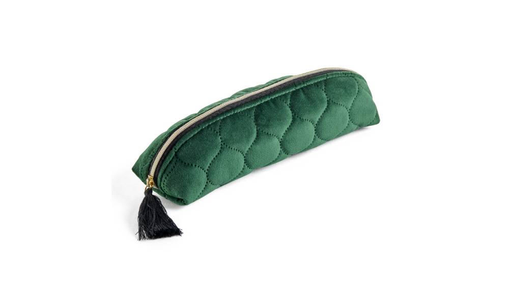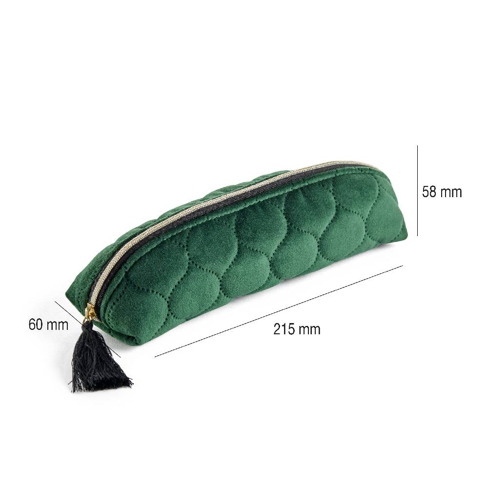 - Ennek a stílusos tolltartónak, amely neszesszerként is használható finom steppelt bársony az anyaga