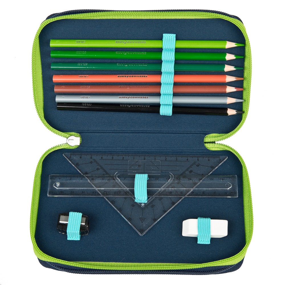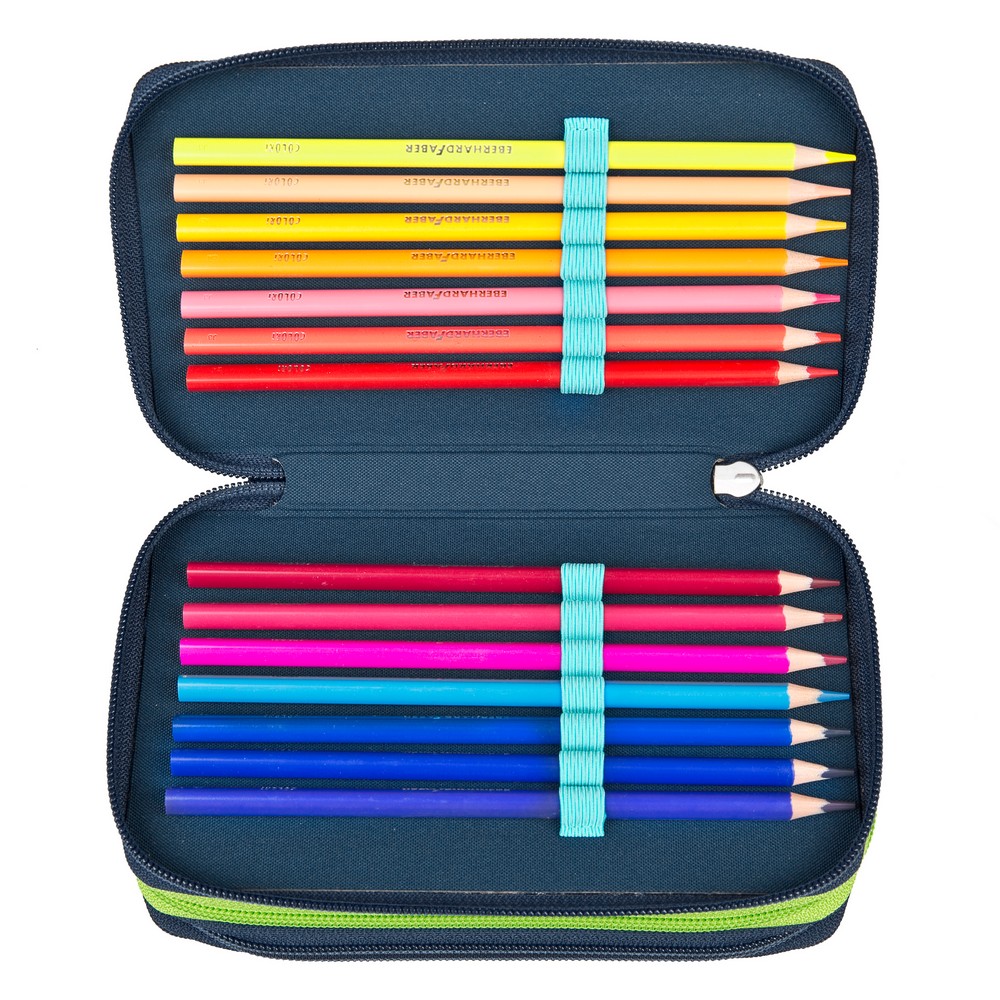Ez a háromszintes tolltartó EberhardFaber írószerekkel töltött