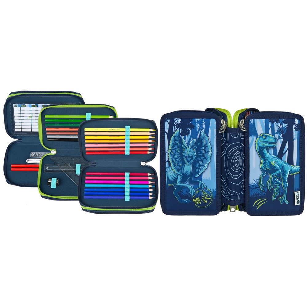 Scooli háromszintes töltött tolltartó, Jurassic World
