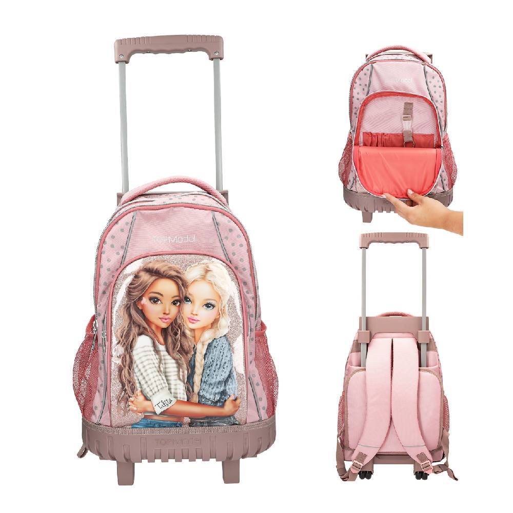 TOPModel iskolai hátizsák, húzható/trolley, barátnős, rózsaszín pöttyös DOTS