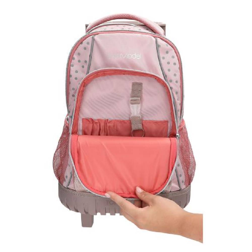 A TOPModel DOTS kollekció rózsaszín, gurulós iskolai hátizsákja szürke pöttyös mintával igazán figyelemfelkeltő, miközben kényelmes és jól átgondolt kialakításának köszönhetően ideális választás az iskolai mindennapokhoz.