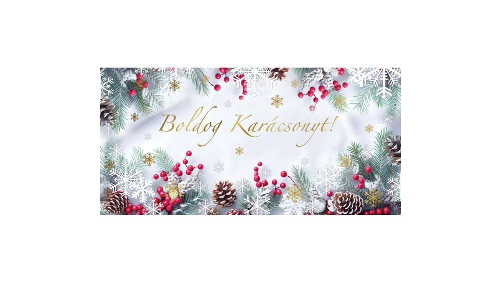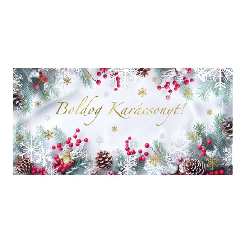 Elegáns karácsonyi üdvözlőlap, kinyitható, belső szöveg nélkül, fekvő méret