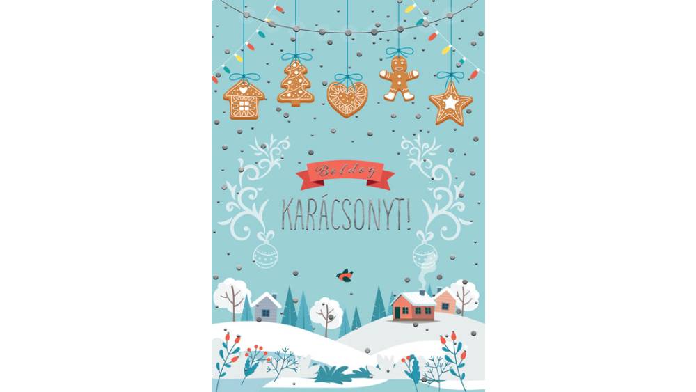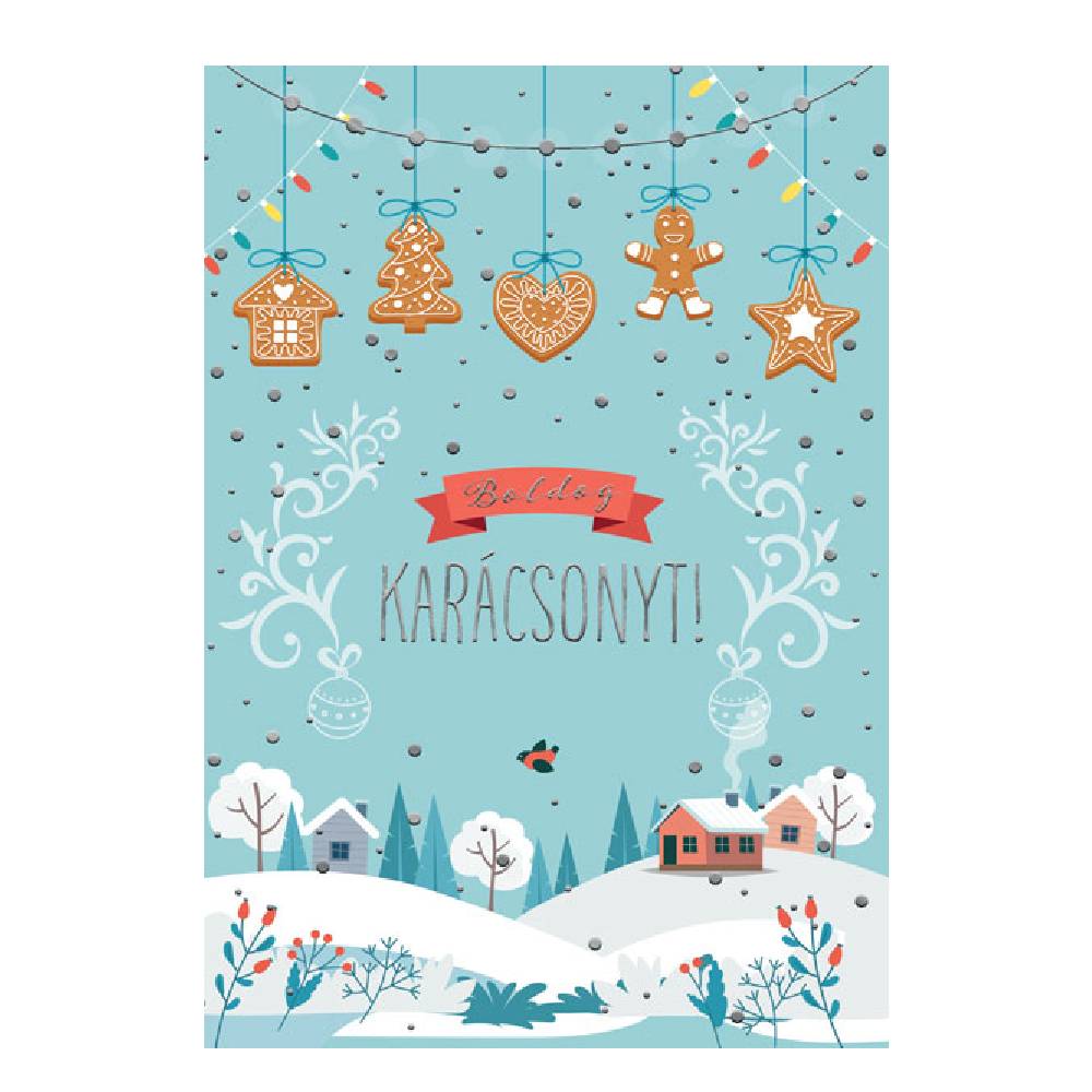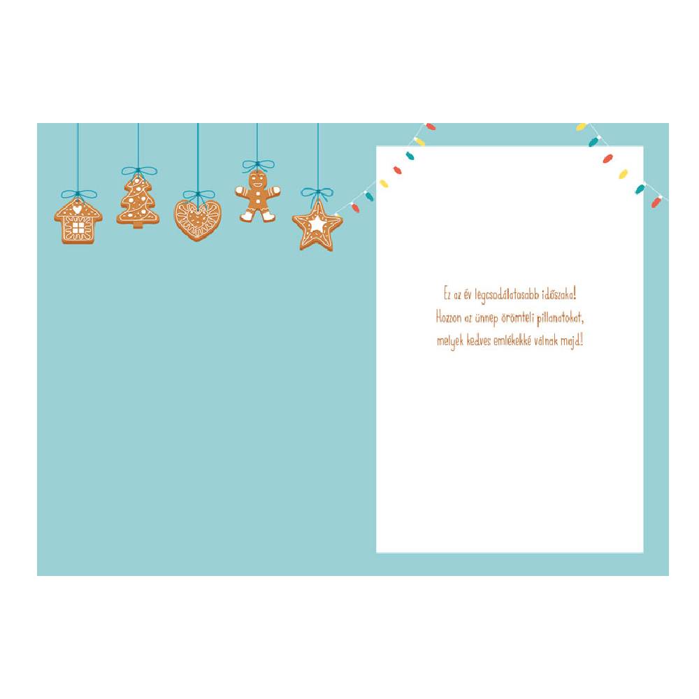 Vidám karácsonyi üdvözlőlap, kinyitható, belső grafikával és szöveggel, álló méret