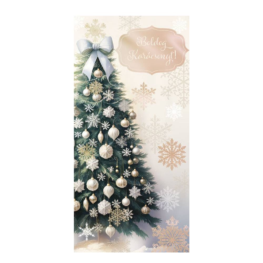 Üdvözlőlap "H" árkód, Karácsonyfa arany,fehér