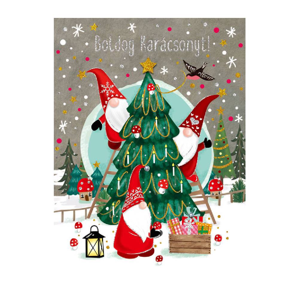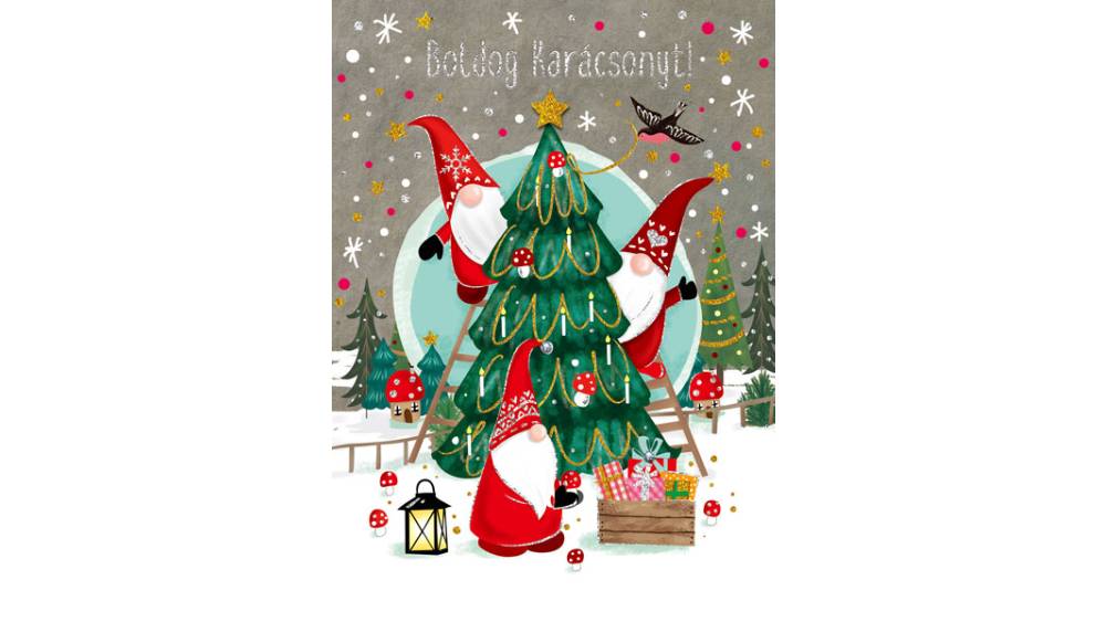 Üdvözlőlap "I" árkód, Karácsonyfa manókkal