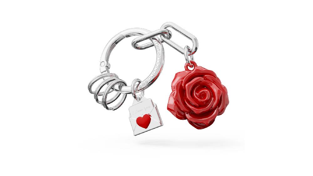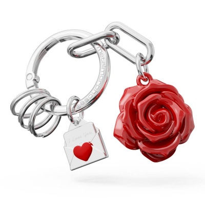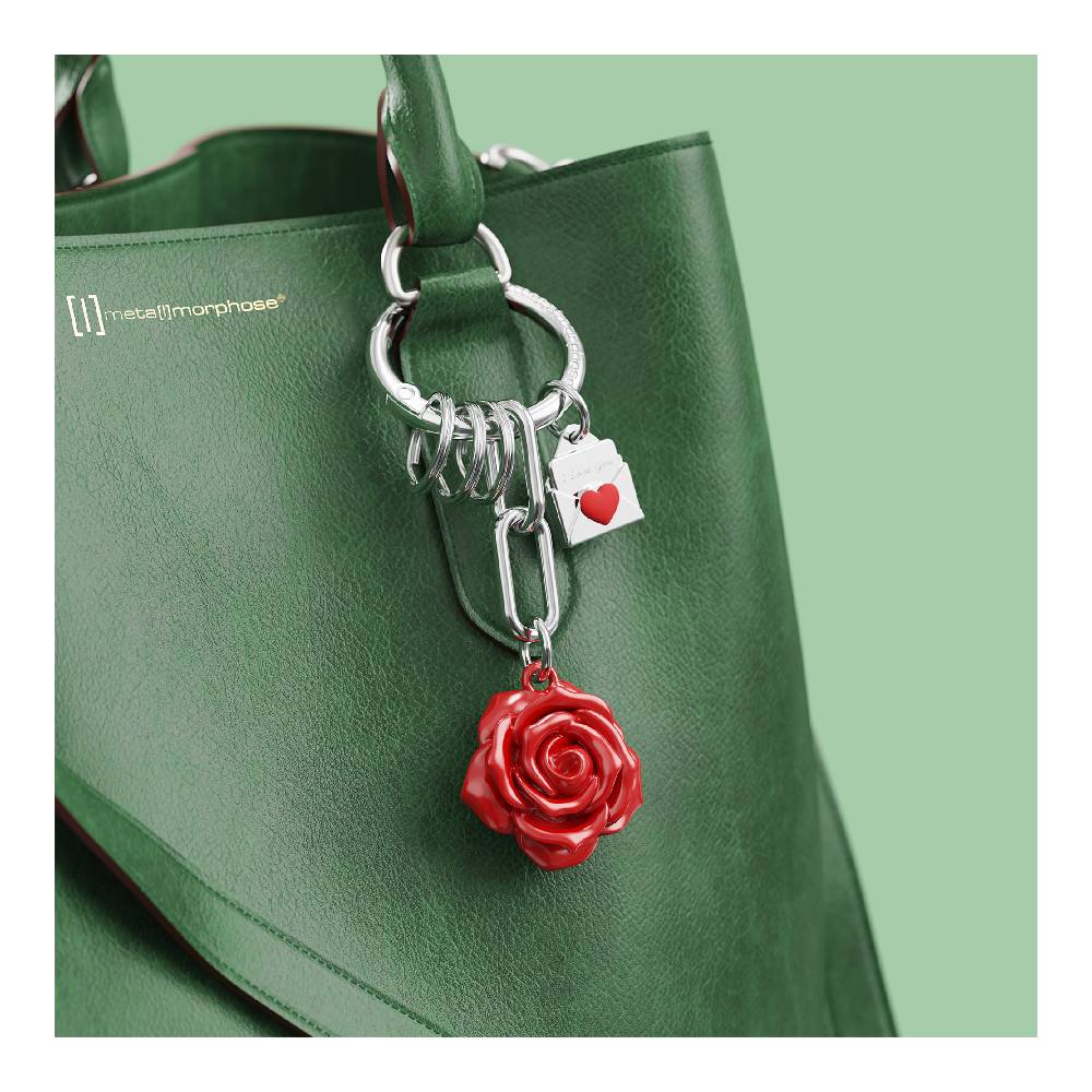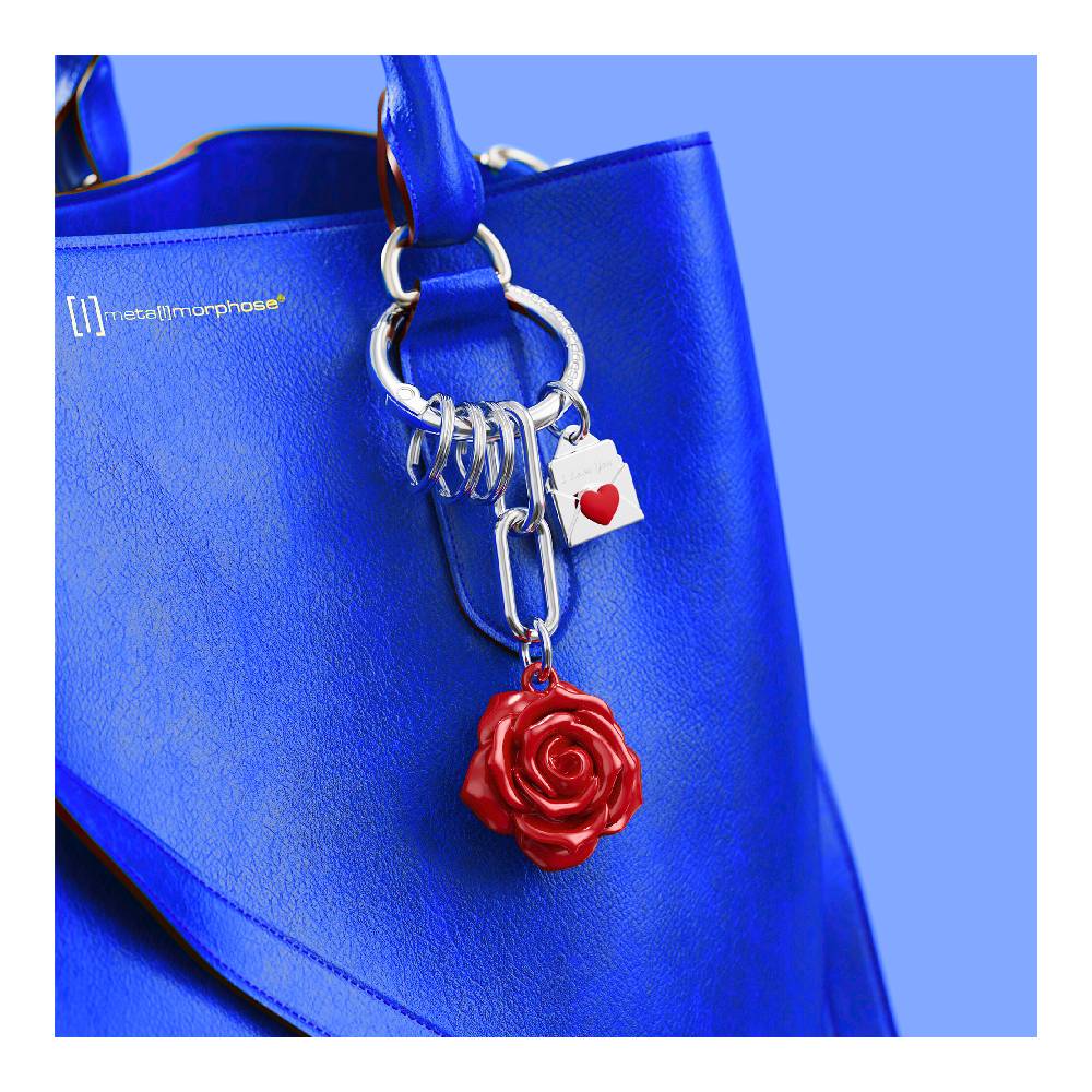Metalmorphose kulcstartó, vörös rózsa, táskatartó+3 kulcstartó gyűrű